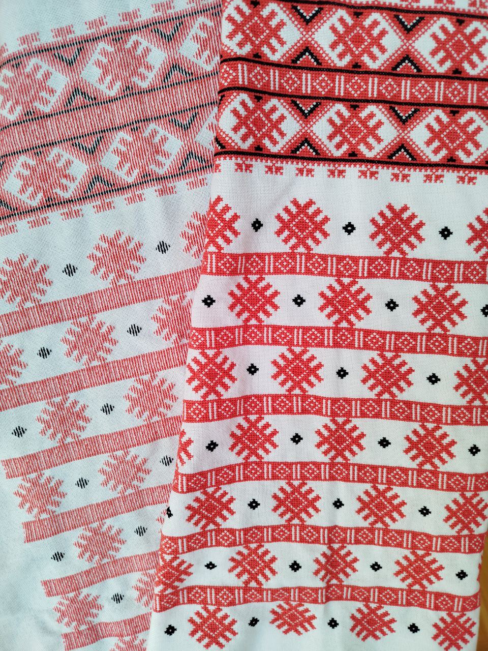 Жіноча вишиванка ручної роботи. Виконана технікою “хрестик” з ідеальним виворотом на домотканому натуральному полотні. Нитки DMC. В композиції використано орнаменти Рівненських жіночих сорочок. Вирізняється ефектним яскраво-червоним кольором. Нехай стане окрасою Вашого гардеробу!