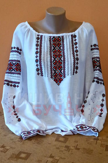 Біла вишита жіноча сорочка розміру XL(52-54), виготовлена з домотканого полотна з вишивкою ручної роботи. Щоб перевірити, чи підійде даний товар по розміру, перейдіть на сторінку “Таблиці розмірів”.
